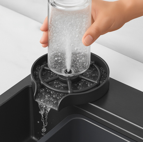 Wbudowany wodospad umożliwia delikatne, a zarazem wydajne napełnianie naczyń wodą. To praktyczne rozwiązanie, szczególnie przydatne podczas mycia dużych garnków i patelni.