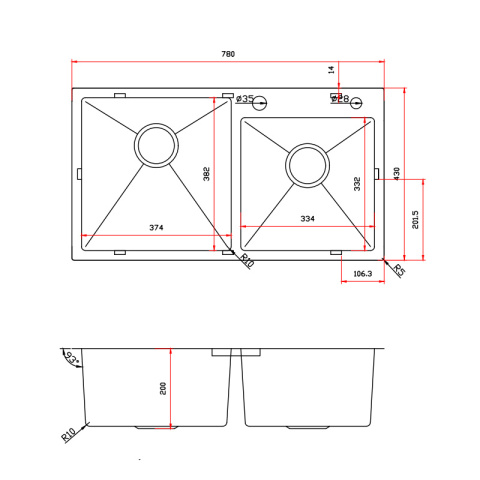 Zlew wyposażony jest w dwie funkcjonalne komory, które umożliwiają jednoczesne wykonywanie różnych zadań kuchennych – od mycia naczyń, przez płukanie produktów spożywczych, aż po oddzielne segregowanie czystych i brudnych naczyń. Taka konstrukcja znacząco zwiększa komfort pracy i usprawnia codzienne obowiązki. Montaż nablatowy sprawia, że zlew idealnie komponuje się z powierzchnią roboczą, tworząc jednolitą, estetyczną całość, która sprzyja utrzymaniu porządku i higieny w kuchni.