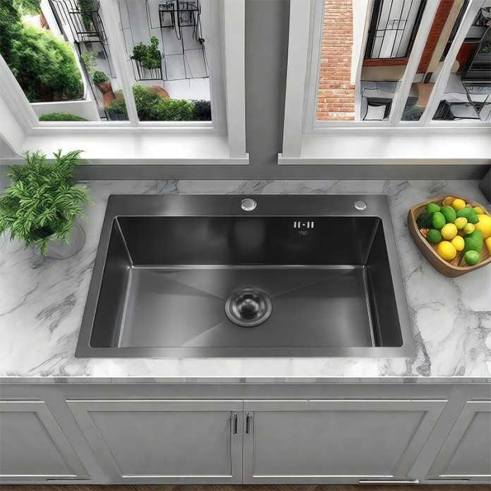 - Elegancki design – Grafitowa powierzchnia zlewu nadaje kuchni elegancji i nowoczesności. Zlew pasuje do różnych stylów aranżacyjnych, doskonale komponując się z klasycznymi i nowoczesnymi wnętrzami, będąc atrakcyjnym elementem dekoracyjnym w kuchni.