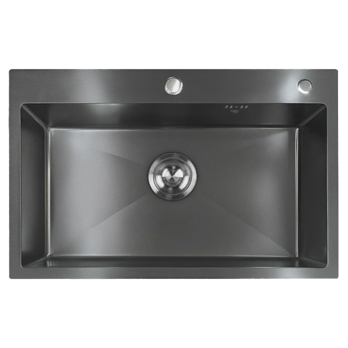 ZLEW KUCHENNY ZLEWOZMYWAK JEDNOKOMOROWY STALOWY GRAFITOWY ALOR-BL-68X45 DOZOWNIK SYFON UCHWYTY