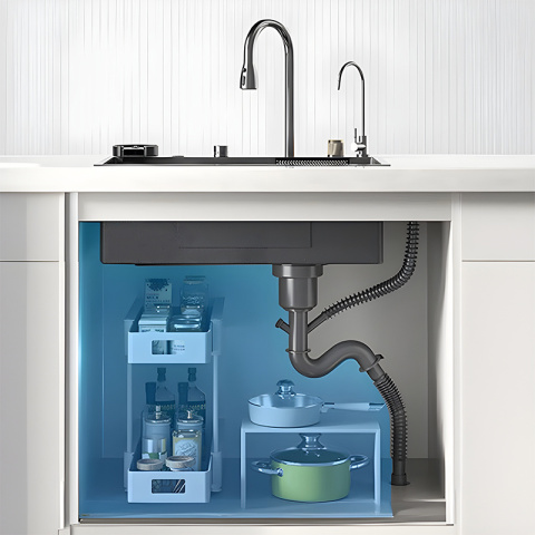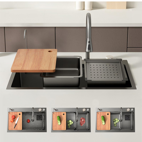 Zlew Hydrosan COBA-BL-68X46 to nowoczesne i funkcjonalne rozwiązanie dla każdej kuchni, które łączy w sobie solidne wykonanie, innowacyjne technologie i elegancki design. Dzięki zastosowaniu wysokiej jakości stali nierdzewnej 304 oraz bogatemu wyposażeniu, zlew ten jest odpowiedzią na potrzeby współczesnych użytkowników, którzy szukają nie tylko estetycznego, ale i wyjątkowo funkcjonalnego produktu. Komfort, wygoda i trwałość to cechy, które wyróżniają model COBA-BL-68X46 na tle innych zlewozmywaków. Jego funkcjonalność sprawia, że jest idealnym rozwiązaniem zarówno w małych, jak i dużych kuchniach, a innowacyjne akcesoria oraz technologie zapewniają wysoki komfort użytkowania.