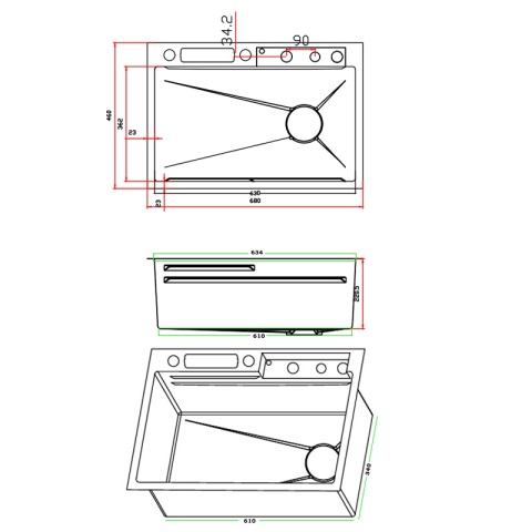 Zlewozmywak wykonany jest z trwałej stali nierdzewnej typu 304, charakteryzującej się wysoką odpornością na zarysowania, działanie wody oraz środków chemicznych. Dzięki temu jest łatwy w czyszczeniu i zachowuje estetyczny wygląd przez długie lata.