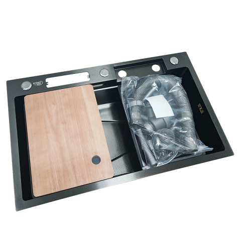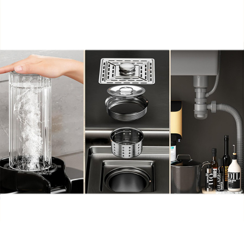 Zlew Hydrosan TOKIO-BL-75X46 to nowoczesne i funkcjonalne rozwiązanie dla każdej kuchni, które łączy w sobie solidne wykonanie, innowacyjne technologie i elegancki design. Dzięki zastosowaniu wysokiej jakości stali nierdzewnej 304 oraz bogatemu wyposażeniu, zlew ten jest odpowiedzią na potrzeby współczesnych użytkowników, którzy szukają nie tylko estetycznego, ale i wyjątkowo funkcjonalnego produktu. Komfort, wygoda i trwałość to cechy, które wyróżniają model TOKIO-BL-75X46 na tle innych zlewozmywaków. Jego funkcjonalność sprawia, że jest idealnym rozwiązaniem zarówno w małych, jak i dużych kuchniach, a innowacyjne akcesoria oraz technologie zapewniają wysoki komfort użytkowania.