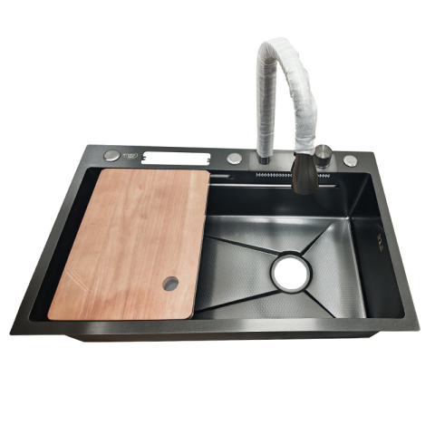 ZLEW KUCHENNY JEDNOKOMOROWY WODOSPAD WIELOFUNKCYJNY GRAFITOWY TOKIO 75x46