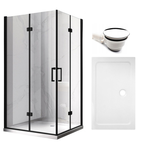 KABINA PRYSZNICOWA PROSTOKĄTNA Z BRODZIKIEM KZ13A/ST04A CZARNA/BIAŁY 100x90 CM